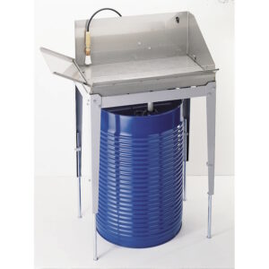 Placer le bac en tôle 15/10e (peinture époxy haute résistance) sur un fût de 220 L ou sur le châssis adapté (modèle fixe 10000 ou mobile 20000).