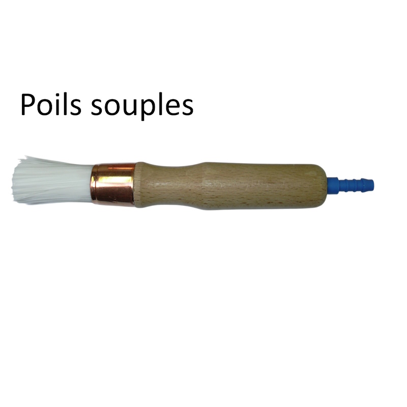 Pinceau de nettoyage à poils souples en nylon, équipé d’un manche en bois et d’une virole en cuivre.